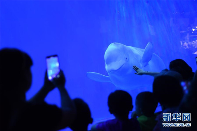 7月10日,游客在海洋世界觀看動(dòng)物表演。新華社發(fā)