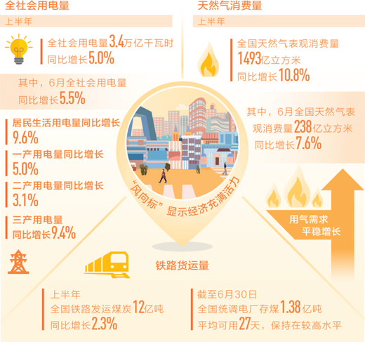 用電量、能源消費(fèi)量和鐵路貨運(yùn)量,常常被視為中國(guó)經(jīng)濟(jì)的風(fēng)向標(biāo)。經(jīng)濟(jì)是否有活力,先看這些指標(biāo)是否活躍。