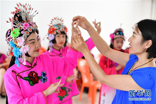 7月16日,小朋友們在灤州市自強(qiáng)里社區(qū)活動(dòng)室學(xué)習(xí)評(píng)劇。 新華社記者 牟宇 攝