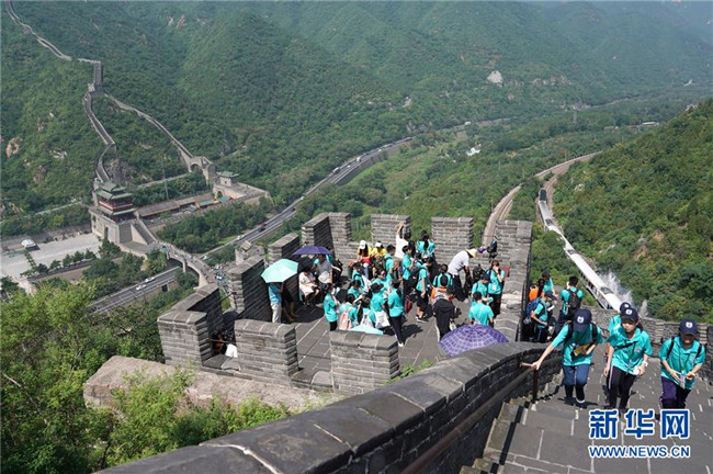 7月21日,參加“2019同心同根萬里行”活動(dòng)的香港青少年在北京居庸關(guān)長(zhǎng)城游覽。 新華社記者鞠煥宗攝
