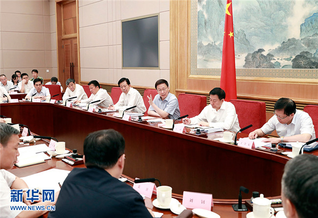 7月25日,中共中央政治局常委、國(guó)務(wù)院副總理、國(guó)務(wù)院推進(jìn)政府職能轉(zhuǎn)變和“放管服”改革協(xié)調(diào)小組組長(zhǎng)韓正在北京主持召開(kāi)國(guó)務(wù)院推進(jìn)政府職能轉(zhuǎn)變和“放管服”改革協(xié)調(diào)小組全體會(huì)議。 新華社記者 龐興雷 攝