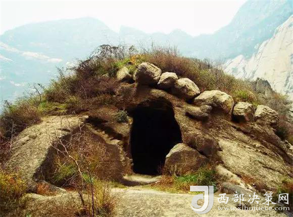 在華山北峰,過(guò)千尺幢經(jīng)百尺峽,就到了北峰最著名的老君犁溝。這里最為吸引人的,除卻“犁險(xiǎn)于幢,幢險(xiǎn)而犁突”的殊勝景觀,除卻老君犁溝盡頭陡峭到連山猴都難以逾越的“猢猻愁”,光是崖壁下一口幽深的石洞,就足以讓四海游人紛至沓來(lái)。足蹬石窩手?jǐn)堣F索攀上石頂,再走過(guò)一個(gè)獨(dú)木橋就到了山洞口。