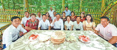 新疆巴音郭楞蒙古自治州尉犁縣興平鎮(zhèn)達西村村干部在一起。李 飛攝