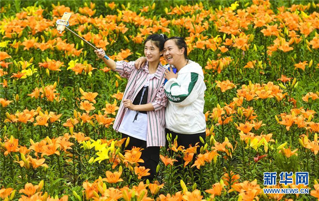 8月8日,游客在伊春市九峰山養(yǎng)心谷景區(qū)拍照留念。