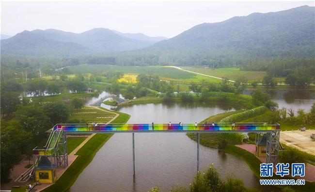 8月8日,游客在伊春市九峰山養(yǎng)心谷景區(qū)觀光。