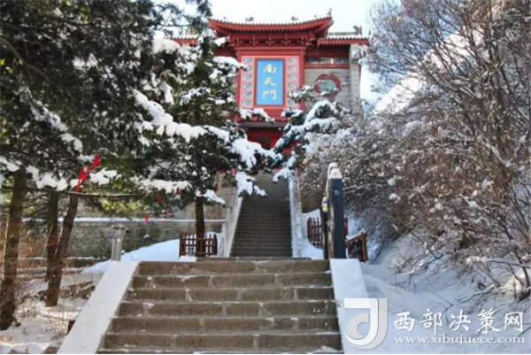 峰南側(cè)是千丈絕壁,直立如削,下臨一斷層深壑,同三公山、三鳳山隔絕。南峰由一峰二頂組成,東側(cè)一頂叫松檜峰,西側(cè)一頂叫落雁峰,也有說南峰由三頂組成,把落雁峰之西的孝子峰也算在其內(nèi)。這樣一來,落雁峰最高居中,松檜峰居?xùn)|,孝子峰居西,整體形象一把圈椅,三個(gè)峰頂恰似一尊面北而坐的巨人。
