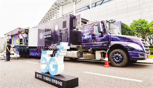 8月14日,在重慶國(guó)際博覽中心,重慶移動(dòng)“5G巡洋艦”??吭诖?。這是全市首輛大型5G應(yīng)用開放體驗(yàn)展示車,市民可零距離感受5G在教育、旅游、工業(yè)、娛樂領(lǐng)域的廣泛應(yīng)用。