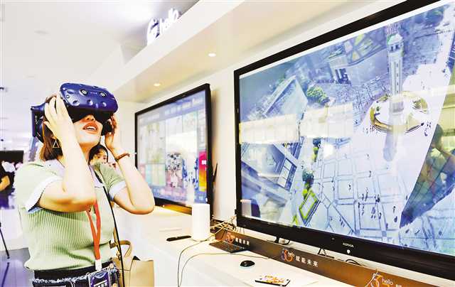 8月15日,在中國(guó)電信重慶公司,體驗(yàn)者頭戴VR設(shè)備,觀看解放碑的實(shí)時(shí)全景。在未來,5GVR將會(huì)在智慧旅游、遠(yuǎn)程教育、遠(yuǎn)程會(huì)議等多領(lǐng)域應(yīng)用。(本組圖片均由記者張錦輝攝)