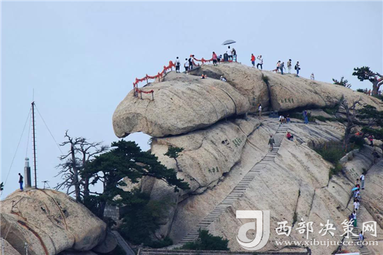 西北絕崖千丈,似刀削鋸截,其陡峭巍峨、陽(yáng)剛挺拔之勢(shì)是華山山形之代表,西峰為一塊完整巨石,渾然天成,海拔2082米,是華山最秀麗險(xiǎn)峻的山峰,又因峰巔有巨石形狀好似蓮花瓣,古代文人多稱其為蓮花峰、芙蓉峰。