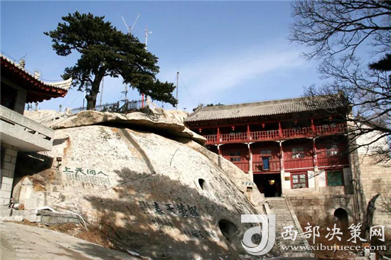 西峰上景觀比比皆是,有翠云宮、蓮花洞、巨靈足、斧劈石、舍身崖等,并伴有許多美麗的神話傳說(shuō)。峰上崖壁題刻遍布,工草隸篆,琳瑯滿目。峰北絕頂叫西石樓峰,峰上楊公塔為楊虎城將軍所建,塔上有楊虎城將軍親筆題辭。塔下巖石上有"枕破鴻蒙"題刻,是書(shū)法家王鐸手跡。