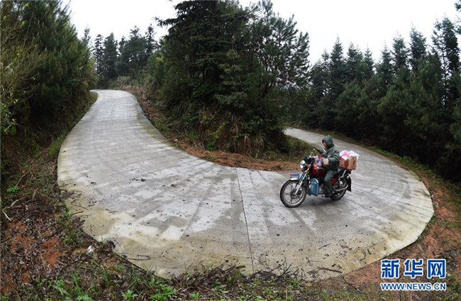 在廣西灌陽縣洞井瑤族鄉(xiāng),野豬殿村小學老師周運雄在采購學生營養(yǎng)餐食材后騎行在回學校的路上(2016年3月23日攝)。新華社記者 陸波岸 攝