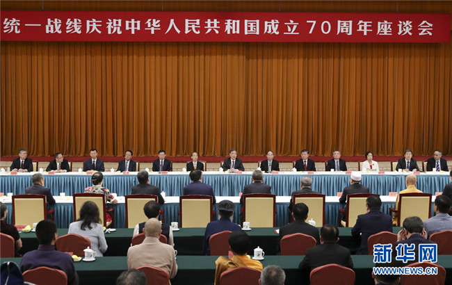 統(tǒng)一戰(zhàn)線慶祝中華人民共和國成立70周年座談會11日在京召開。中共中央政治局常委、全國政協(xié)主席汪洋出席會議并講話。他強調(diào),統(tǒng)一戰(zhàn)線是中國共產(chǎn)黨領導的廣泛政治聯(lián)盟,具有鮮明的中國特色,過去是、現(xiàn)在是、今后仍然是黨的事業(yè)取得勝利的重要法寶。要以習近平新時代中國特色社會主義思想為指導,深入學習貫徹習近平總書記關于加強和改進統(tǒng)一戰(zhàn)線工作的重要思想,切實把中共中央對統(tǒng)一戰(zhàn)線的決策部署落實下去、把廣大統(tǒng)一戰(zhàn)線成員的智慧力量凝聚起來,為實現(xiàn)中華民族偉大復興的中國夢共同奮斗。