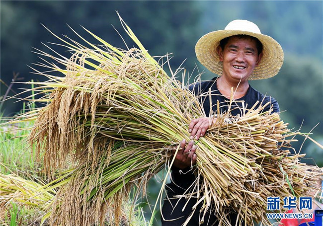 9月17日,貴州省榕江縣計劃鄉(xiāng)計劃村陽開苗寨的村民在收割水稻。 近年來,貴州省圍繞產(chǎn)業(yè)選擇、培訓(xùn)農(nóng)民、技術(shù)服務(wù)、資金籌措、組織方式、產(chǎn)銷對接、利益聯(lián)結(jié)、基層黨建等“八要素”,通過“減、融、服”創(chuàng)新推進農(nóng)村產(chǎn)業(yè)結(jié)構(gòu)調(diào)整,既帶動了農(nóng)戶增收,也推動了特色產(chǎn)業(yè)做大做強。 新華社記者 楊文斌 攝