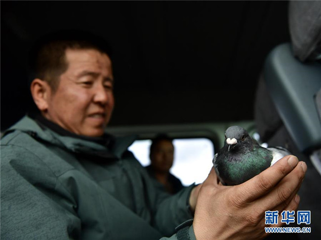 9月24日,青海湖國家級自然保護(hù)區(qū)管理局的巡湖觀測人員王延明在巡湖期間救治一只鴿子。