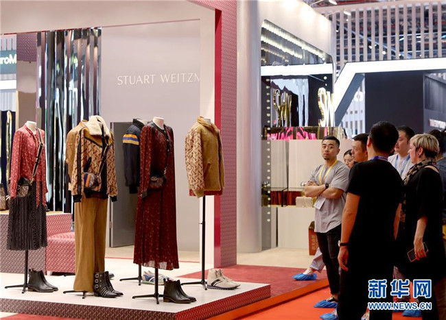 11月3日,在品質(zhì)生活展區(qū)內(nèi),展商對時裝的陳列效果進(jìn)行最后確認(rèn)。新華社記者劉穎攝