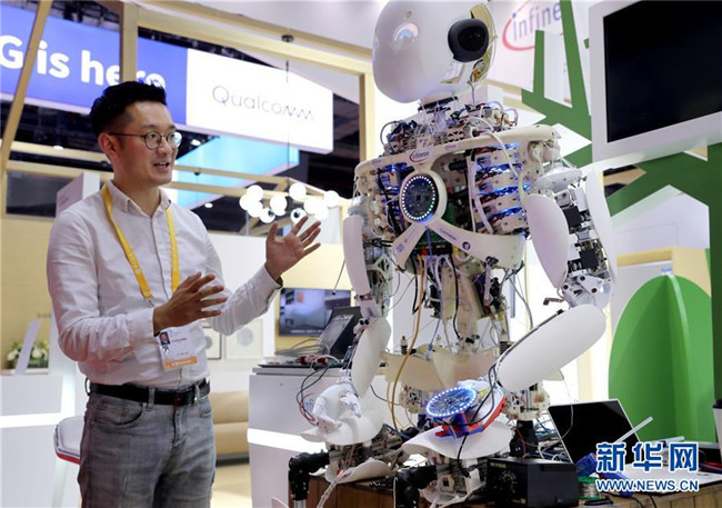 11月3日,科技生活展區(qū)的德國英飛凌公司的機(jī)器人Roboy已完成調(diào)試,它將在展會上和觀眾進(jìn)行多項有趣互動。新華社記者劉穎攝