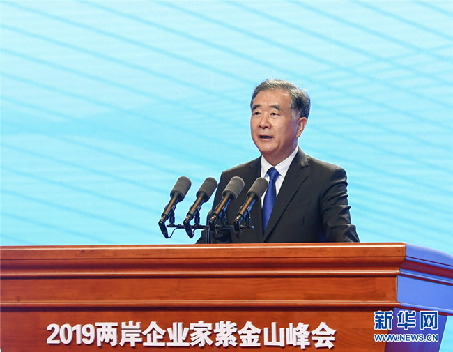 2019兩岸企業(yè)家紫金山峰會(huì)4日在江蘇南京舉行。中共中央政治局常委、全國政協(xié)主席汪洋出席并發(fā)表演講。