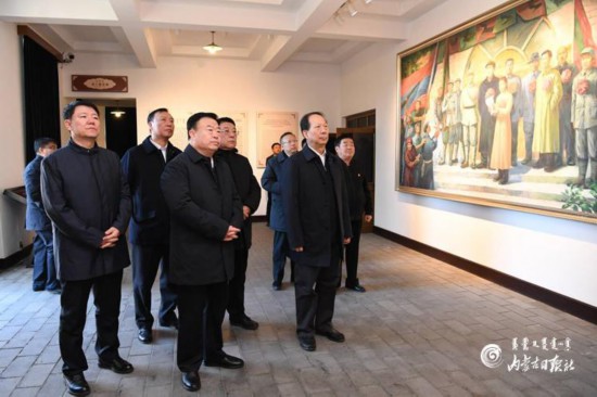 石泰峰來(lái)到五一大會(huì)舊址和烏蘭夫辦公舊址,聽(tīng)取講解,參觀展陳,詳細(xì)了解自治區(qū)成立和民族區(qū)域自治制度實(shí)踐歷程。他說(shuō),重溫歷史、緬懷先輩,我們深刻體會(huì)到?jīng)]有中國(guó)共產(chǎn)黨就沒(méi)有新中國(guó)、沒(méi)有內(nèi)蒙古自治區(qū)。在全區(qū)上下學(xué)習(xí)宣傳貫徹黨的十九屆四中全會(huì)精神和深入開(kāi)展主題教育之際,我們來(lái)這里就是要接受革命傳統(tǒng)教育,不忘初心、牢記使命,為堅(jiān)持和完善中國(guó)特色社會(huì)主義制度、民族區(qū)域自治制度,為實(shí)現(xiàn)人民幸福、民族復(fù)興而不懈奮斗。