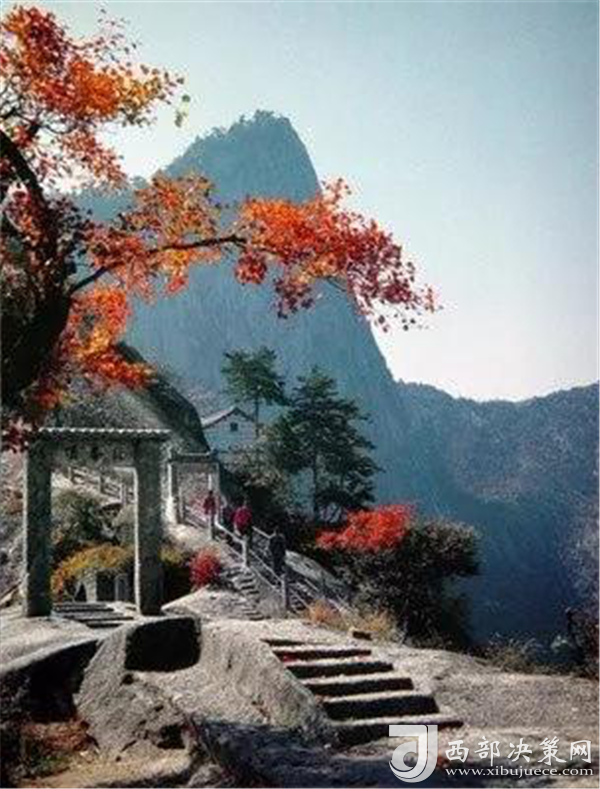 峰北臨白云峰,東近量掌山,上通東西南三峰,下接溝幢峽危道,峰頭是由幾組巨石拼接,渾然天成。絕頂處有平臺,原建有倚云亭,現(xiàn)留有遺址,是南望華山三峰是蒼龍嶺的好地方。峰腰松樹常青,秀氣充盈,是攀登華山絕頂途中理想的休息場所。