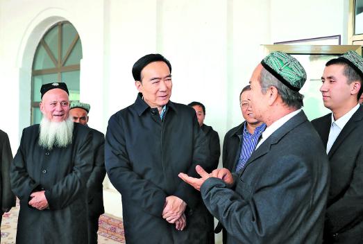 陳全國(guó)還來(lái)到高昌區(qū)紅星片區(qū)戈壁社區(qū)清真寺,調(diào)研宗教活動(dòng)開(kāi)展情況。他說(shuō),要全面貫徹黨的宗教工作基本方針,依法保障信教群眾正常宗教需求和正常宗教活動(dòng)的開(kāi)展,促進(jìn)宗教與社會(huì)主義社會(huì)相適應(yīng)。廣大宗教人士要大力弘揚(yáng)愛(ài)國(guó)愛(ài)教優(yōu)良傳統(tǒng),堅(jiān)守正道、正信正行,引導(dǎo)各族信教群眾為實(shí)現(xiàn)社會(huì)穩(wěn)定和長(zhǎng)治久安作出積極貢獻(xiàn)。