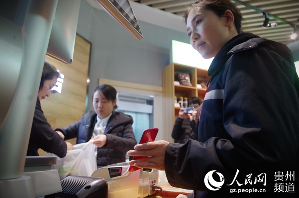 消費(fèi)者正在結(jié)賬。龍章榆 攝