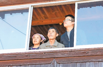 楊昌儒(中)一家人在搬家前朝窗外遠(yuǎn)眺。