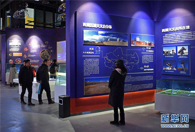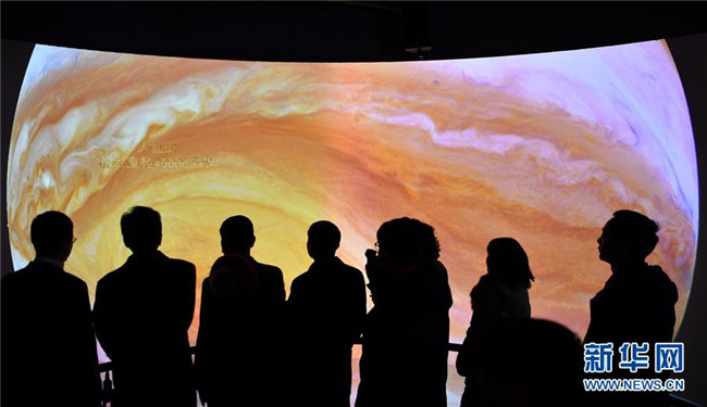 12月14日,觀眾參觀藏域星球天文科普體驗(yàn)館。當(dāng)日,藏域星球天文科普體驗(yàn)館在西藏拉薩開館試運(yùn)營,這是西藏第一家天文科普體驗(yàn)館。據(jù)介紹,此館以感知宇宙、認(rèn)知宇宙、探索宇宙為主題,以參觀者的第一感官體驗(yàn)為設(shè)計導(dǎo)向,利用互動投影、懸浮投影、物體跟蹤、人體捕捉、體感互動、VR等高科技手段展示藏地的神秘,揭示宇宙的奧秘。新華社記者李鑫攝
