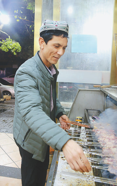 曾在阿布拉江烤肉王餐廳做過服務(wù)員的如則托合提夫婦,去年從和田老家來到南昌,經(jīng)過一年多學習,今年5月選擇“單飛”,開了一家屬于自己的燒烤店。“租門面、搞裝修,都是阿卜杜拉一手幫我弄的,還提供了兩萬元啟動資金。”談起眼下的生活,如則托合提非常滿意。