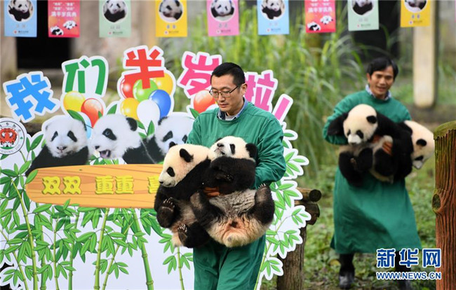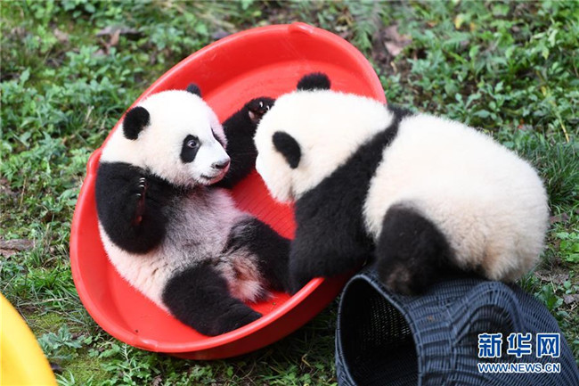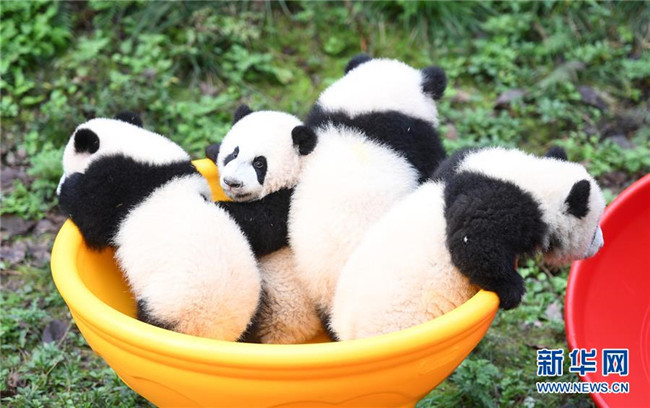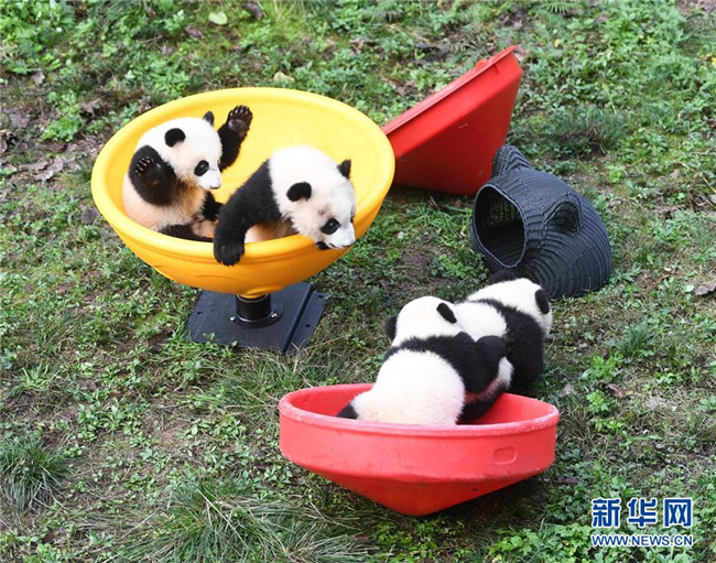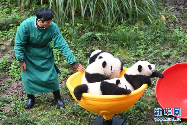 重慶:4只半歲大熊貓戶外慶祝半歲生日
