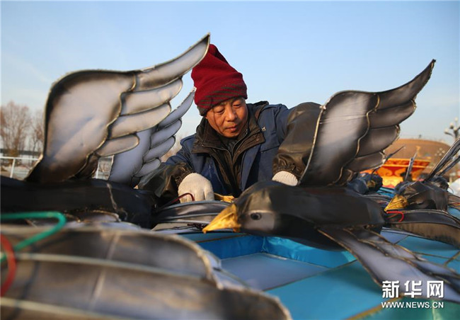 新年臨近,在寧夏銀川花博園內工作人員正抓緊制作大型花燈,為即將舉辦的迎春燈會做準備。據了解,此次迎春燈會將于2019年12月31日至2020年2月9日在銀川花博園舉辦,包括大型燈會、焰火表演、非遺展示等系列活動。