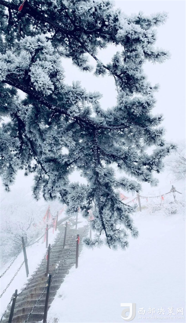 2020年第一場雪,紛紛揚揚灑落華山之巔。圣潔的雪花把華山妝扮得分外妖嬈嫵媚,平日陡峭的巖石,象穿著潔白的羽衣,宛若天仙般亭亭玉立于峰頭路旁,似向游人拂疑,微笑致意,最讓為之從心里震顏起敬的是,華山雪中松樹的雄姿與風情。