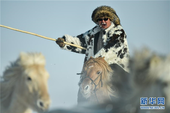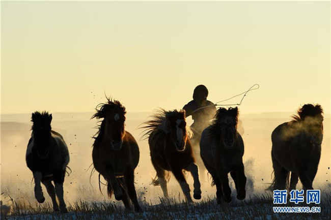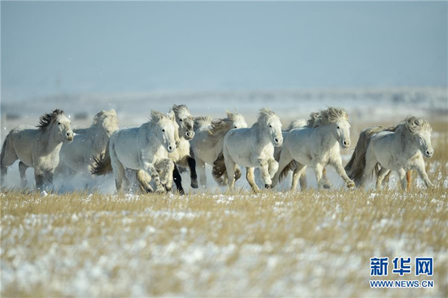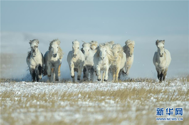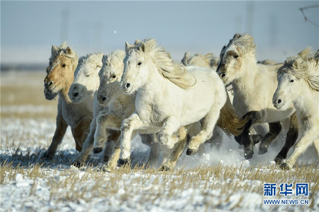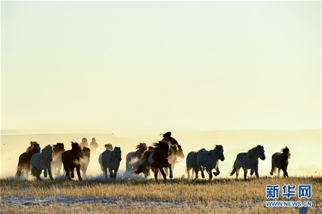 當(dāng)日,內(nèi)蒙古自治區(qū)錫林浩特市鳳凰馬場(chǎng)進(jìn)行了一場(chǎng)馴馬活動(dòng)。騎手們趕著馬群,在白茫茫的草原上奔跑,景象壯觀,吸引了不少游客和攝影愛(ài)好者前來(lái)觀賞。 新華社記者 劉磊 攝
