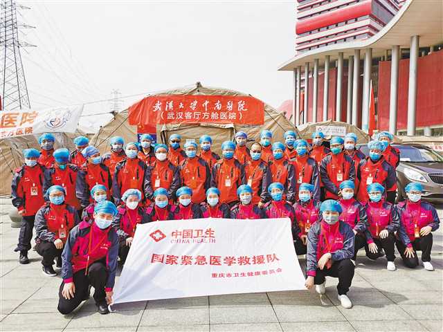 重慶市第四批支援湖北醫(yī)療隊(duì)又名重慶市國(guó)家緊急醫(yī)學(xué)救援隊(duì),由39名隊(duì)員組成,隨隊(duì)還有藥械車(chē)、普通門(mén)診車(chē)、特檢車(chē)、油電車(chē)等裝備。全隊(duì)于2月5日抵達(dá)武漢,先后完成在東西湖方艙和沌口方艙的全部醫(yī)療任務(wù)。3月8日,隨著沌口方艙休艙,醫(yī)療隊(duì)的工作暫時(shí)告一段落,于駐地休整待命。