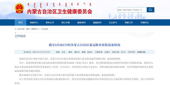 3月26日,記者從內(nèi)蒙古自治區(qū)衛(wèi)生健康委員會獲悉,2020年3月25日9時至26日7時,內(nèi)蒙古自治區(qū)報告新增境外輸入新冠肺炎確診病例12例、疑似病例2例。
