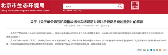 近日,北京市生態(tài)環(huán)境局發(fā)布《關于<關于部分第五階段排放標準車輛延期辦理注冊登記手續(xù)的通告>的解讀》指出,凡在2020年1月1日之前已購買的、或已從外省市轉(zhuǎn)出遷往本市的符合“國五”排放標準要求的車輛,因疫情防控期間不能按期辦理注冊登記手續(xù)的,可延期至2020年6月30日前繼續(xù)辦理,逾期將不再辦理。