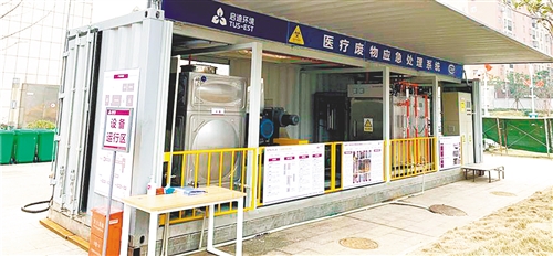 啟迪環(huán)境科技醫(yī)廢應(yīng)急團(tuán)隊(duì)在武漢搭建的醫(yī)療廢物應(yīng)急處理系統(tǒng)。(資料圖片)