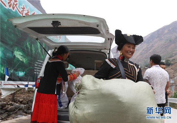 5月12日,四川省昭覺(jué)縣阿土列爾村第一批26戶貧困戶陸續(xù)下山準(zhǔn)備搬新家。新華社記者江宏景攝