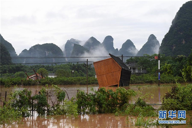 這是廣西陽朔縣被洪水沖毀的旅游設(shè)施(6月7日攝)。新華社記者 陸波岸 攝