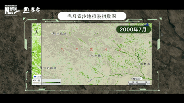 ▲毛烏素沙地2000年7月與2019年7月植被指數(shù)對比圖
