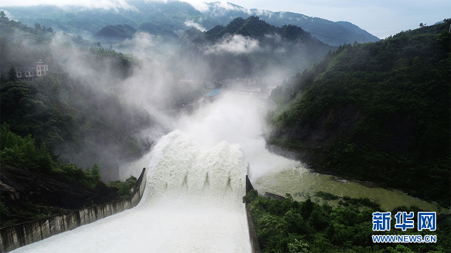 受近段時(shí)間的強(qiáng)降雨影響,重慶市酉陽(yáng)縣多條河流河水猛漲,部分水庫(kù)接近汛限水位。6月18日,位于酉陽(yáng)縣境內(nèi)的金家壩水庫(kù)開(kāi)閘泄洪,確保水庫(kù)安全。新華網(wǎng)發(fā)(陳碧生 攝)