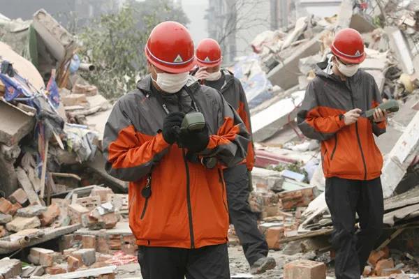 應(yīng)急救援人員手持北斗短報文終端