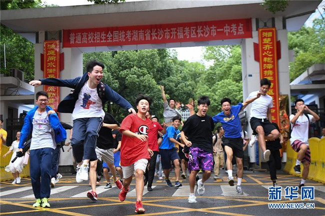 7月8日,考生們在高考結束后跑出湖南省長沙市一中考點。 當日,全國部分地區(qū)2020年高考結束。 新華社記者 薛宇舸 攝