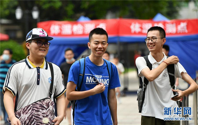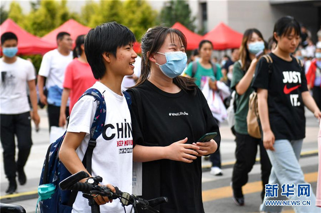 7月8日,考生走出內蒙古自治區(qū)呼和浩特市第二中學考點。 當日,全國部分地區(qū)2020年高考結束。 新華社記者 徐欽 攝