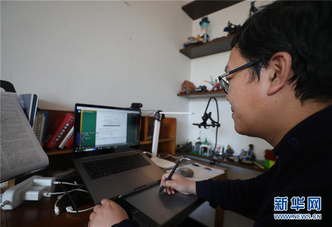 清華大學(xué)新聞與傳播學(xué)院教師梁君健在辦公室內(nèi)進行在線教學(xué)(2月17日攝)。新華社記者 鞠煥宗 攝