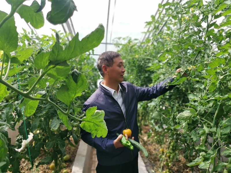 圖為西藏自治區(qū)阿里地委副書記、行署常務副專員張小平現(xiàn)場了解大棚果蔬種植情況。