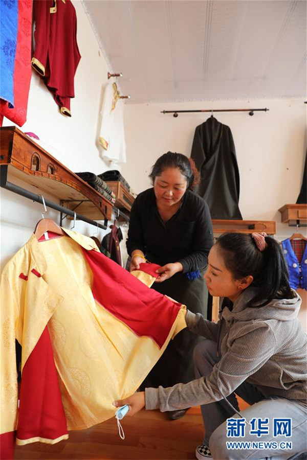 7月23日,在甘肅省甘南藏族自治州夏河縣??奇?zhèn)崗岔村的扶貧車間內(nèi),卓瑪吉(右)和扶貧車間負(fù)責(zé)人研究成衣款式。崗岔村是甘肅省甘南藏族自治州夏河縣??奇?zhèn)的一個(gè)牧業(yè)村,平均海拔3000米以上。2018年,在夏河縣文明辦工作的卓瑪吉開始擔(dān)任駐村幫扶工作隊(duì)隊(duì)長,每年都有200多天待在草原上。兩年來,卓瑪吉帶領(lǐng)大家開辦扶貧車間,發(fā)展特色產(chǎn)業(yè),聯(lián)系勞務(wù)輸出。為了讓村民更全面地了解精準(zhǔn)扶貧政策,卓瑪吉登門宣講政策。為了提高村容村貌,卓瑪吉發(fā)動(dòng)大家開展廁所革命和庭院環(huán)境評(píng)比,積極響應(yīng)甘南藏族自治州“全域無垃圾”創(chuàng)建行動(dòng)。她還從縣城請(qǐng)來醫(yī)生,為村民舉辦健康講座,在全村婦女中開展“兩癌篩查”。如今,崗岔村變成了干凈、整齊、富裕、美麗的生態(tài)文明村,提前實(shí)現(xiàn)了整村脫貧。談起心愿,卓瑪吉說:“要讓草原和草原上的人都變得更美。”新華社發(fā)(杜哲宇攝)