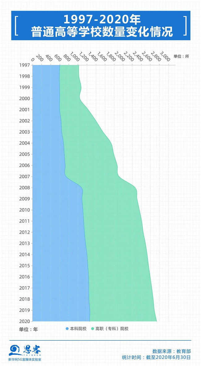 截至2020年6月30日,全國(guó)有普通高等學(xué)校2740所,含本科院校1258所、高職(??疲┰盒?482所。2000多所高校是怎樣分布的呢?