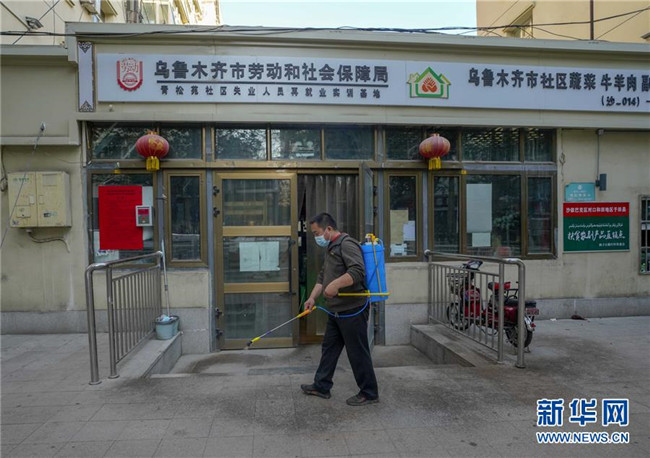 在直銷(xiāo)點(diǎn)正式開(kāi)門(mén)前,陳金奇認(rèn)真做好消殺工作(8月8日攝)。新華社記者 趙戈 攝