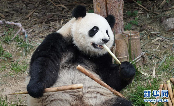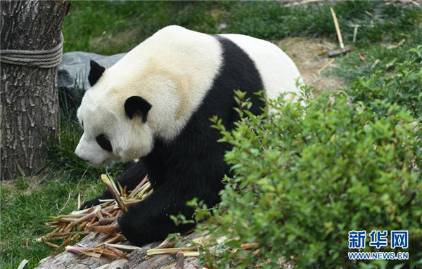 8月16日,大熊貓“雙欣”在西寧熊貓館內(nèi)吃竹子。青海省西寧熊貓館的四只大熊貓已經(jīng)在西寧生活了一年多,在工作人員的悉心照顧下,已經(jīng)適應(yīng)了青藏高原的氣候,身體各項(xiàng)指標(biāo)正常。新華社記者耿輝凰攝