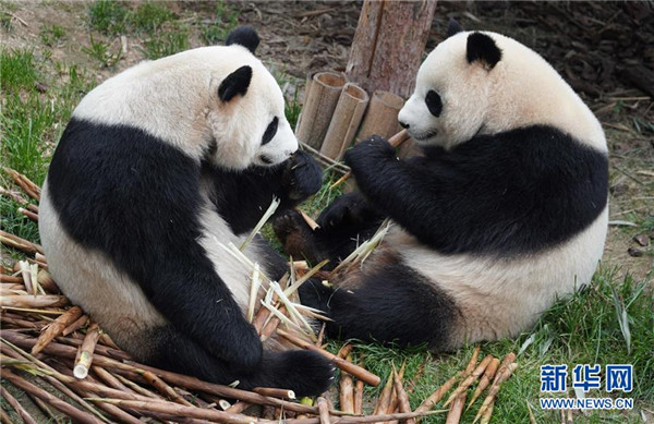 8月16日,大熊貓“奇果”(左)和“園滿”在西寧熊貓館內(nèi)玩耍。青海省西寧熊貓館的四只大熊貓已經(jīng)在西寧生活了一年多,在工作人員的悉心照顧下,已經(jīng)適應(yīng)了青藏高原的氣候,身體各項(xiàng)指標(biāo)正常。新華社記者薛玉斌攝